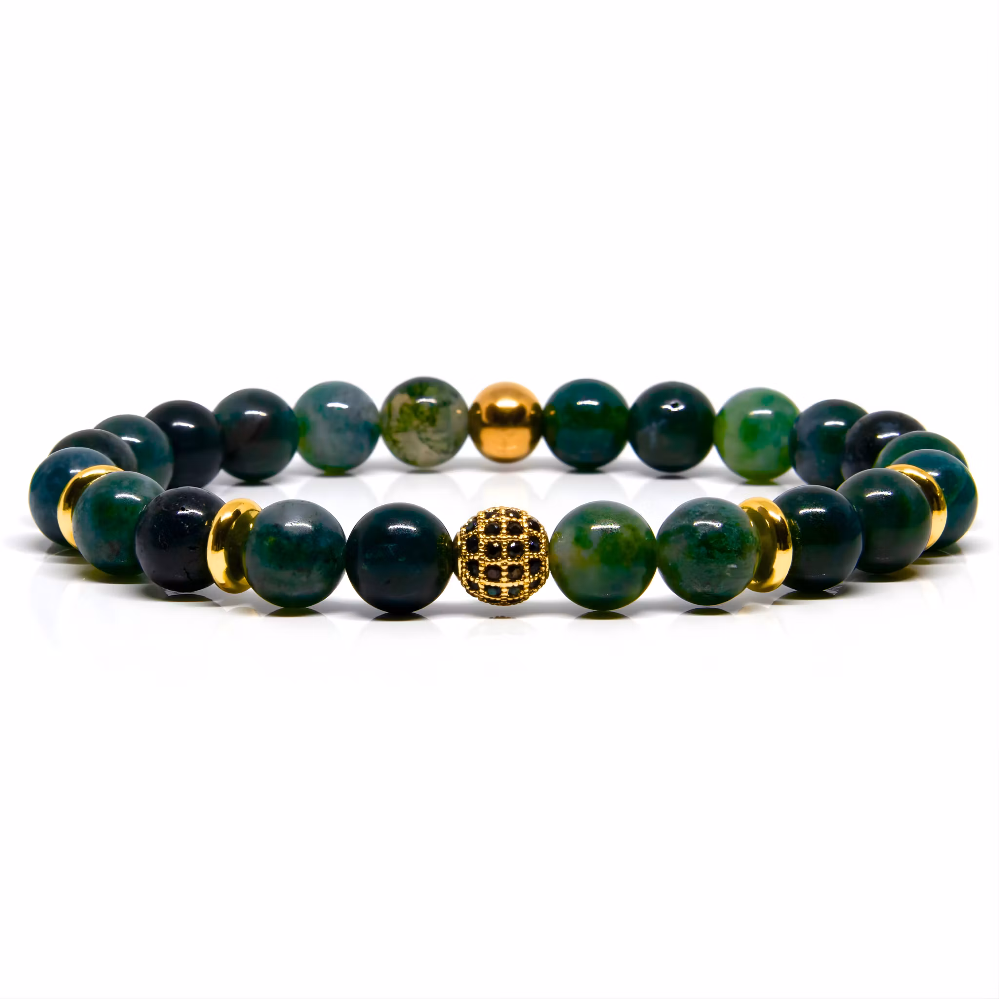 Utforska naturens skönhet med detta tidlösa herrarmband tillverkat av handplockade gröna Moss agate stenar. Varje sten är noga utvald för att skapa en unik och naturlig känsla, vilket ger armbandet en distinkt karaktär. Den elastiska tråden garanterar en bekväm passform och gör att armbandet smidigt anpassar sig till din handled. Inspirerat av Falsterbonäset strålar detta armband av en sofistikerad och tidlös aura, vilket gör det till det perfekta tillskottet för den moderna mannen som uppskattar en touch av natur och exklusivitet.