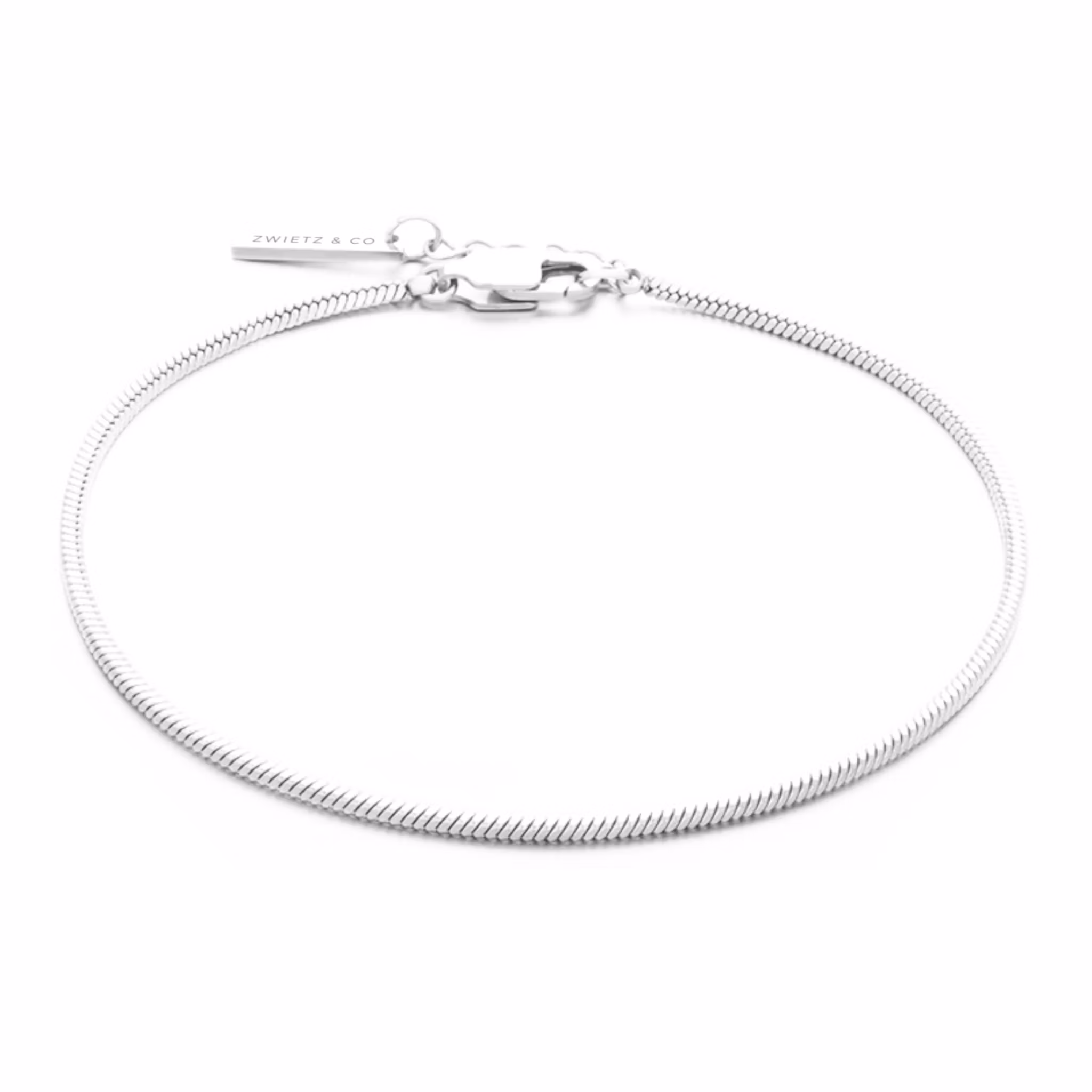 Ett stilrent och tidlöst armband i en klassisk snake chain-design som ger ett elegant och sofistikerat uttryck. Den släta, tätt sammanlänkade kedjan reflekterar ljuset subtilt och gör armbandet lika passande till vardags som till mer uppklädda tillfällen.Alla armband levereras i en Zwietz & Co-påse, perfekt för förvaring eller som present.